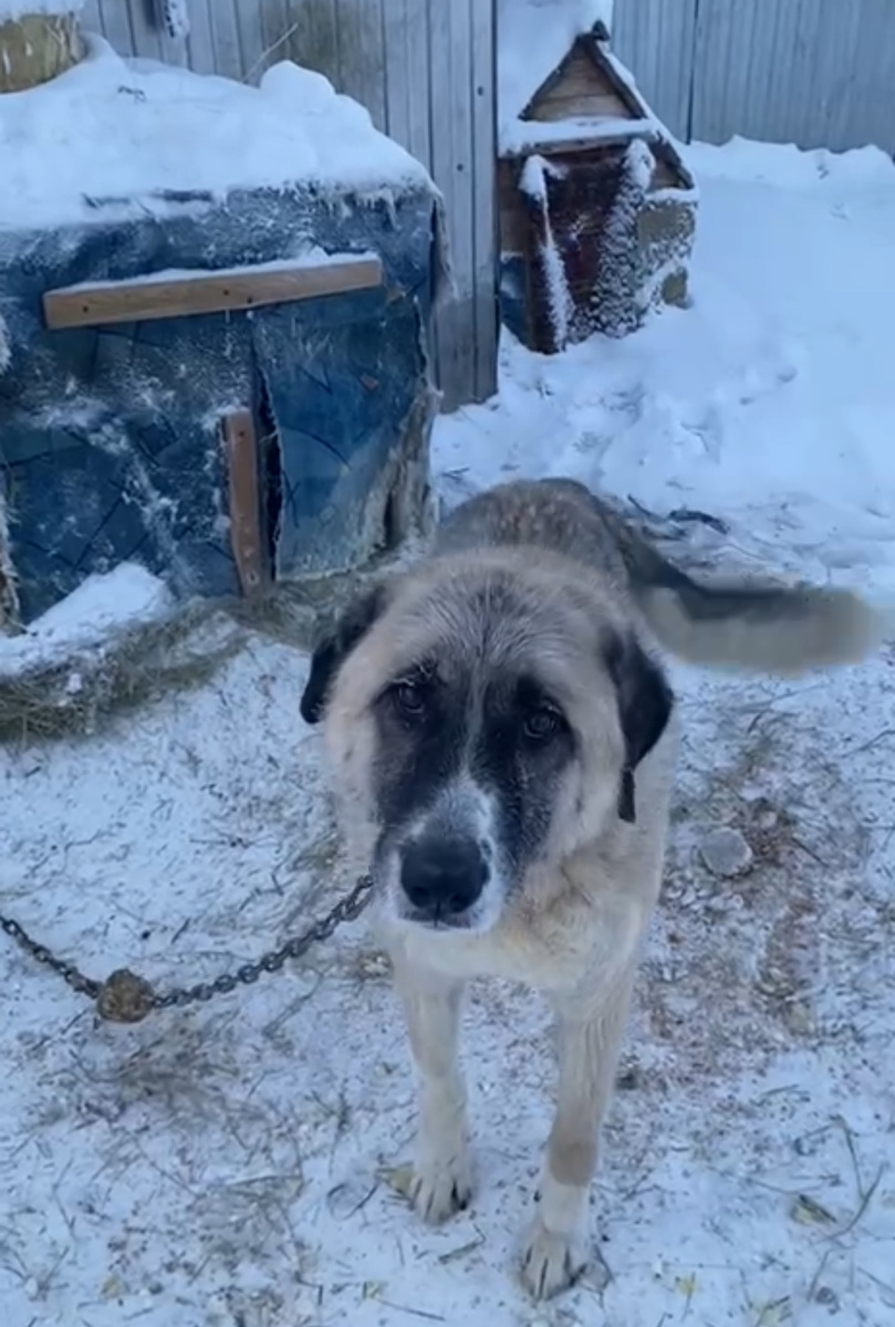 Помните, показывала Вам, как забирали щенков из ППБЖ (пункта передержки бездомных животных) в Якутске, а на заднем плане сидел грустный песель и с тоской наблюдал, как малышей сажают в машину, в то время как он сидел на цепи на морозе…