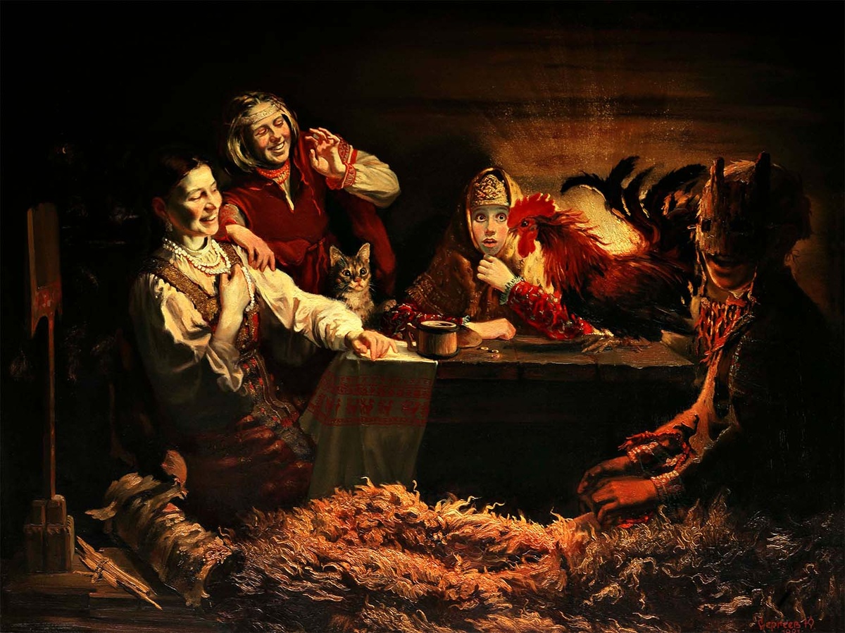 А если хотели узнать, кто будет главным в браке, курицу и петуха связывали хвостами и сажали под решето.