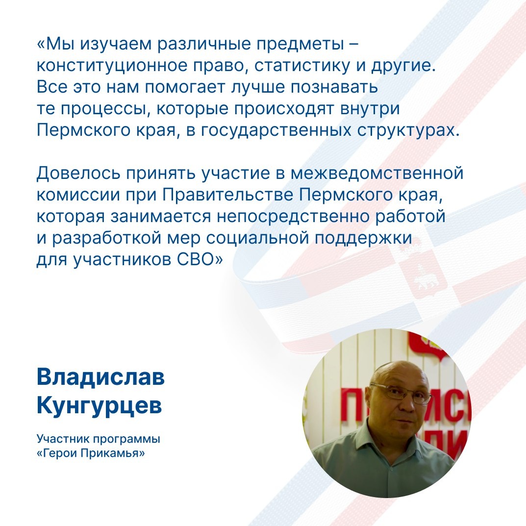 ». «Мы изучаем различные предметы – конституционное право, статистику и другие. Все это нам помогает лучше познавать те процессы, которые происходят внутри Пермского края, в государственных структурах», – поделился участник программы Владислав Кунгурцев. ✅ Обучение стартовало в сентябре на базе Пермского филиала Президентской академии РАНХиГС. Уже завершились три очных модуля, всего их четыре. Между ними участники программы проходят стажировку под руководством персональных наставников, подробности – в карточках.