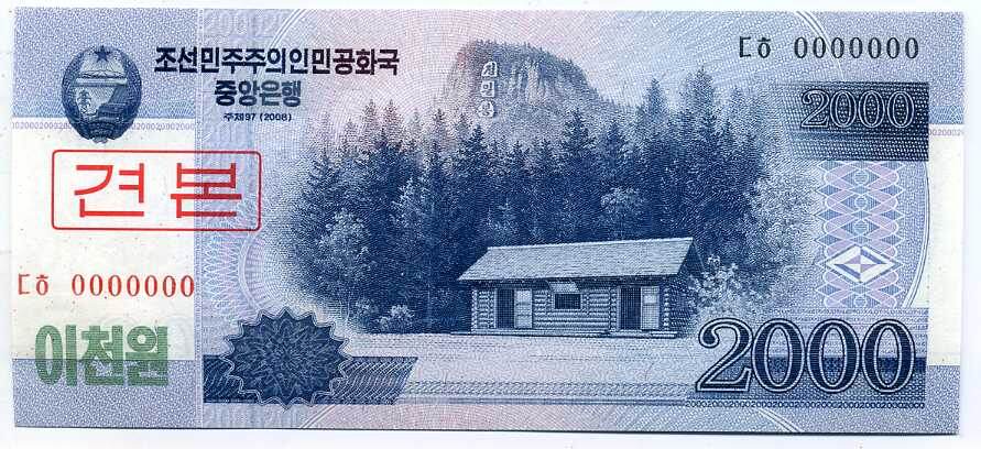 продаю банкнота Северная Корея 2000 вон 2008 год. размер длина-145 мм, высота-65 мм. Образец, нулевой номер. стоимость 100 рублей.