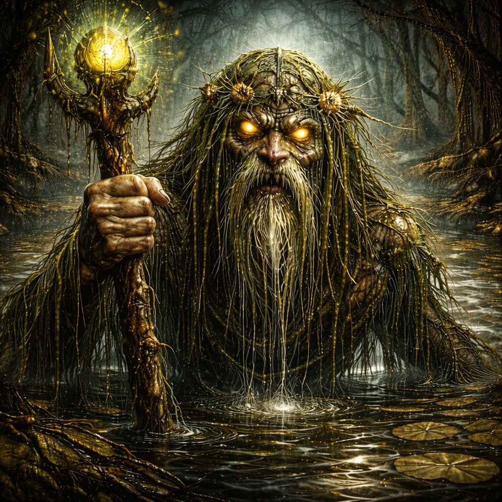 А есть вода, которая смотрит снизу. Глубинные омуты в восточноевропейской традиции всегда выделялись отдельно. Их не путали с рекой, не приравнивали к болоту и не считали частью обычного течения. Омут — это место, где вода перестаёт быть дорогой и становится ловушкой. И именно там появляется он — Илистый старик. Это не водяной в привычном понимании. Это не утопленник и не тень. Это хранитель того, что лежит ниже дна — там, где заканчиваются объяснения. Кто такой Илистый старик Илистого старика никогда не описывали как активную сущность. Он не охотится, не плавает, не заманивает криком. Его присутствие ощущается как тяжесть, как вязкая неподвижность воды, как ощущение, что дно тянет. В народных представлениях он выглядит как старик, покрытый илом, водорослями, тиной. Иногда — как едва различимый силуэт, будто бы выросший из самого дна. Но внешность здесь вторична. Главное — функция. Илистый старик не пускает обратно. Он —