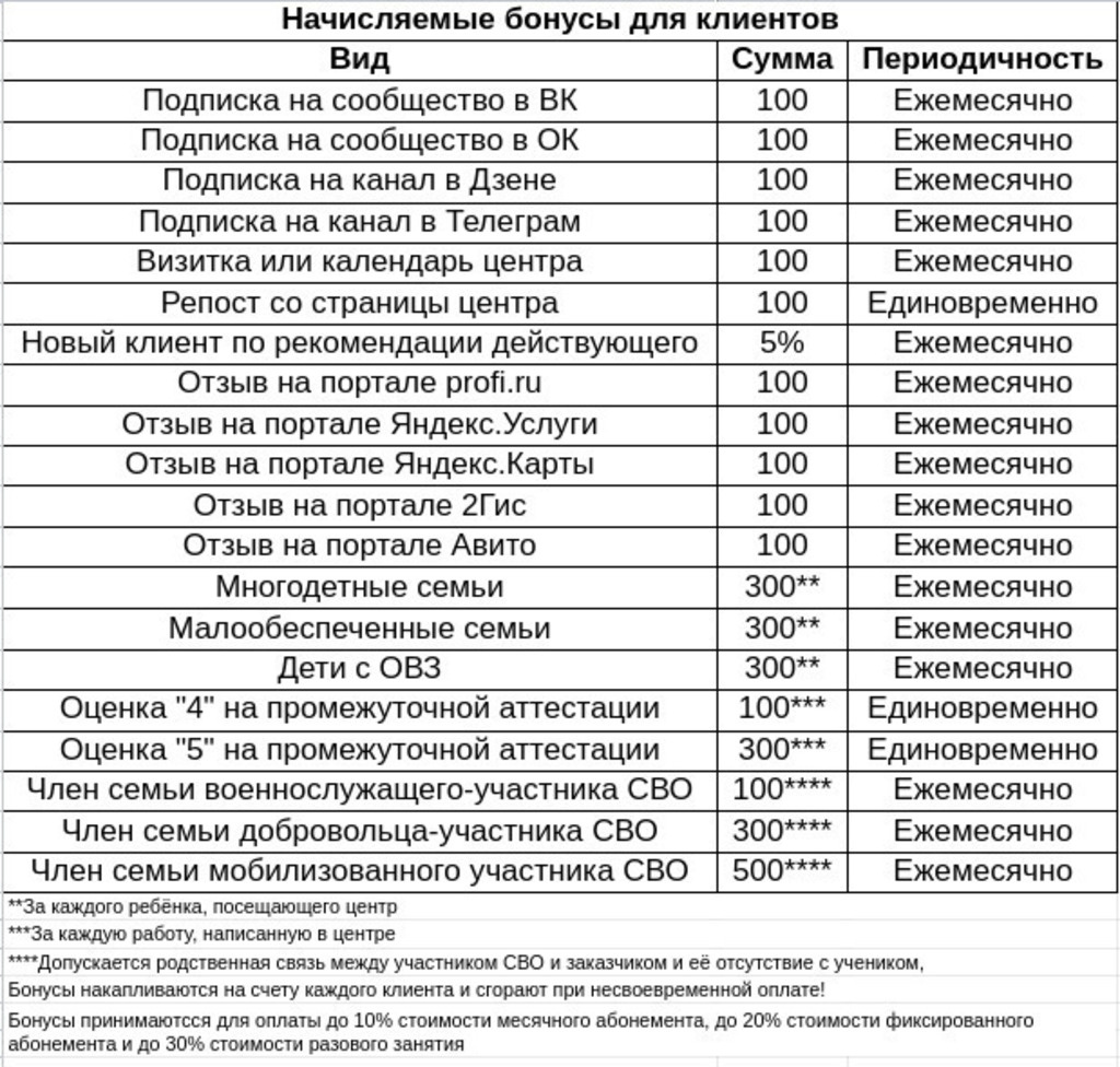 Ваша семья совершает героический поступок. Позвольте нам позаботиться о будущем ваших детей. Репетиторский центр "Пропуск в будущее" с уважением и признательностью относится к семьям участников Специальной Военной Операции. Мы понимаем, какую большую нагрузку — эмоциональную и бытовую — вы испытываете. Для вашей поддержки мы расширили программу бонусов. Чем можем помочь? Для детей, супругов, братьев и сестер участников СВО мы предлагаем дополнительные ежемесячные бонусы от 100 до 500 на любой курс или консультацию в нашем центре. Ваш ребенок получит качественную помощь и поддержку по выбранному направлению: - Подготовка к ОГЭ и ЕГЭ: поможем восполнить пробелы в знаниях и успешно сдать экзамены. - Творческие студии. Подарите ребенку уверенность и спокойствие, пока его близкий защищает наше будущее. Мы уверены, что стабильность и развитие детей — лучшая поддержка для семьи. Наша команда специалистов создаст для вашего ребенка безопасную обстановку, где он сможет учиться, развиват