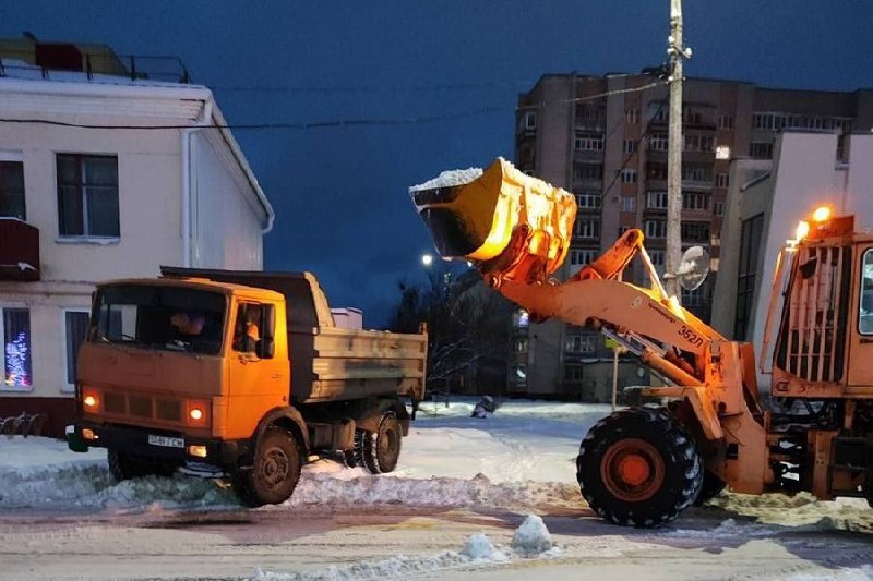 В Гомеле снег убирают с раннего утра. Пока горожане досыпают или собираются на работу после праздничного дня, коммунальные службы, городские предприятия и организации выходят на борьбу с последствиями непогоды.