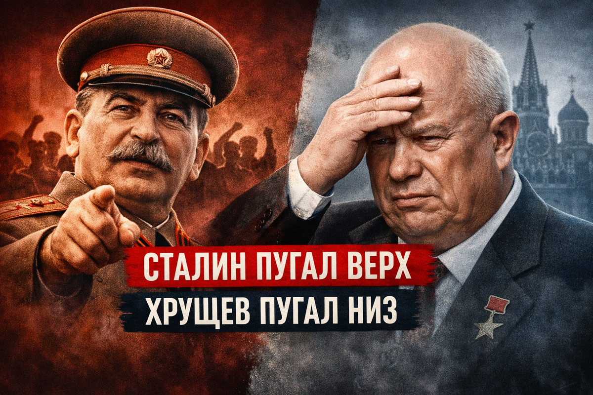 В советской истории есть один странный переломный момент, о котором говорят редко и осторожно. Это не 1937-й и не 1953-й. Это 1956 год — ХХ съезд партии, когда Хрущёв разоблачил культ личности Сталина. Формально — поворот. Фактически — перенастройка системы. Сталин управлял через страх, но страх был распределён равномерно. Боялись все: крестьяне, рабочие, генералы, министры. Ошибка могла стоить жизни независимо от звания. Это делало систему жестокой, но внутренне дисциплинированной: ответственность существовала, пусть и в извращённой форме. Хрущёв сделал другое. Он убрал страх для верхушки — и навсегда оставил его внизу. Ключевой исторический факт, который редко проговаривают вслух: после разоблачения культа личности не был осуждён ни один из организаторов репрессий. Ни один член Политбюро, ни один нарком, ни один руководитель НКВД не предстал перед судом. Сталин был объявлен виновным — посмертно. Все остальные оказались «введёнными в заблуждение». Это был перелом. С этого момента сис
