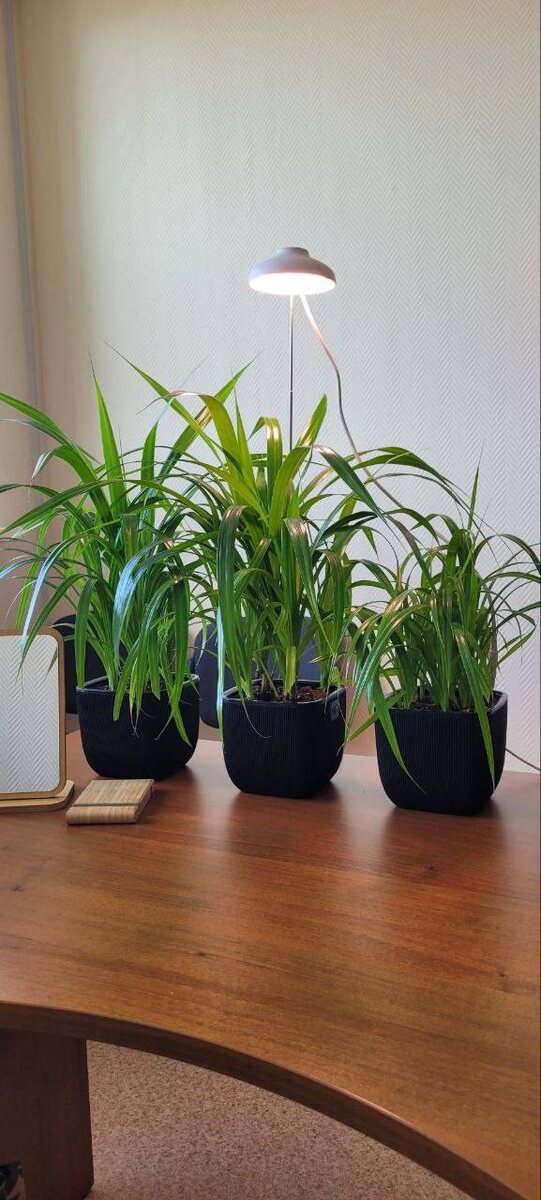 +компактный, размеры на фото (подойдет даже для маленьких горшков) +штык находится в центре, поэтому лампа не заваливается на бок +бюджетный (всего 500₽, кольцевые выходят гораздо дороже) +штык выдвигается до 70см +мощность 12вт (небольшая, зато настоящая, производитель обещал 12Вт и не обманул, как это обычно бывает) +/- нет таймера, только выключатель на проводе (для меня это огромный плюс вот почему)) +полный спектр +белый свет с едва заметным розовым оттенком (производитель пишет, что по центру размещены красные светодиоды) У меня таких ламп 5, покупала летом 2021года. В основном все были у меня в офисе и работали каждый день с 7 до 17 часов. Все до сих пор в отличном состоянии. Только у одной лампы сломался штык, но я планирую закрепить ее на опору. Сейчас лампы привезла домой, будут освещать антуриумы 🖥Покупала ТУТ Yu_jungle 🌱