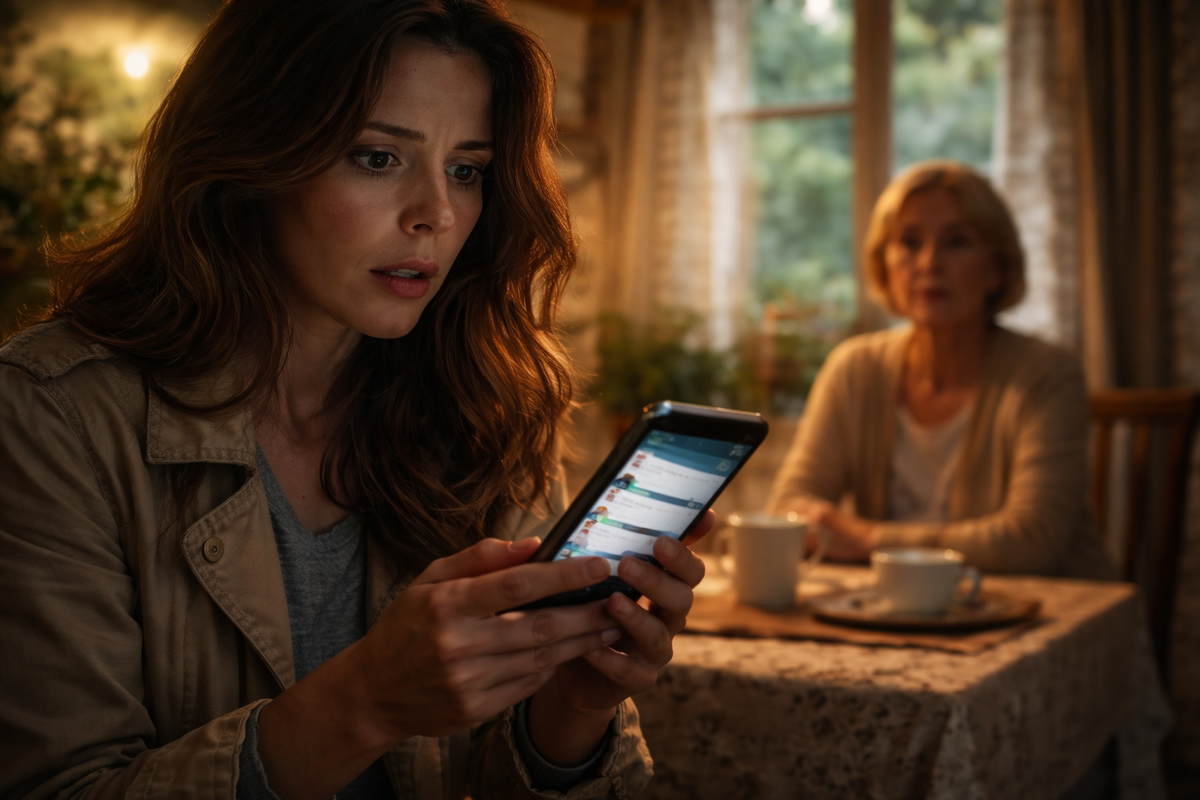 День был обычный, почти пустой: дорога, пыль, редкие машины навстречу. Она ехала без особых мыслей, прокручивая в голове список дел, которые ждут дома. Телефон лежал на соседнем сиденье — выключенный, аккуратно упакованный в сервисный пакет. Она не собиралась в него лезть. По крайней мере, так себе говорила. Свекровь встретила Юлю без радости, но и без привычной холодной колкости. Сухое «проходи», чай на веранде, разговоры ни о чём. Всё как всегда. Телефон Юля положила на стол рядом с собой, словно случайно, но взгляд то и дело возвращался к нему. — Связь тут плохая, — бросила свекровь, будто между делом. — Если что, не дозвонишься. Юля кивнула. И именно в этот момент экран загорелся. Телефон включился сам — или ей так показалось. Логотип, загрузка, короткая вибрация. Юля машинально взяла его в руки. Сердце стукнуло сильнее, чем следовало бы. Экран разблокировался. Без пароля. Первое уведомление появилось почти сразу. Потом второе. Потом третье. Сообщения шли одно за другим, будто кто-