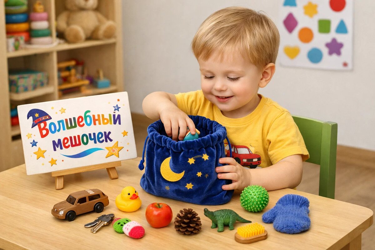 Иногда самые сильные развивающие инструменты выглядят до смешного просто. Не приложения, не карточки, не модные методики. А обычный мешочек с разными мелочами внутри. Эта игра часто кажется взрослым несерьёзной. Ну что такого - сунул руку, пощупал, угадал. Но если посмотреть глубже, становится понятно: именно так ребёнок учится думать телом, связывать ощущения со словами, а опыт - с мышлением. Речь пойдёт об игре, которую условно называют «волшебный мешочек». И она действительно работает - особенно там, где не помогают уговоры «будь внимательнее» и «подумай хорошенько». Ребёнок по очереди достаёт из мешочка предметы, не глядя на них, и пытается понять, что у него в руке. Он не просто угадывает. Он исследует: И только после этого называет ответ. На первый взгляд - обычная забава. На самом деле - полноценная тренировка внимания, речи и мышления. Осязание - один из первых способов познания мира. Ребёнок ещё не говорит, но уже понимает: это мягкое, это колется, это приятно, это опасно. Ког