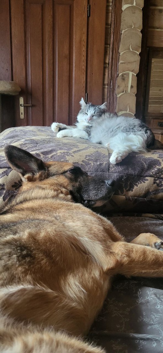 А тут лежит среди кошек и ветошью прикидывается