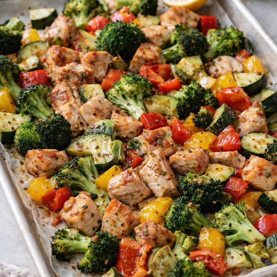 ! ✨ За 25 минут вы получите сытный ужин без горы грязной посуды. Идеальный вариант для буднего вечера: нарезал, выложил, поставил в духовку — и готово! 🍗🥦🫑 ✅На 2 порции вам понадобится: * куриное филе — 350–450 г; * брокколи — 250–300 г (можно взять замороженную); * болгарский перец — 1 шт.; * цукини — 1 шт.; * оливковое масло — 1 ч. л. (можно обойтись без него); * соль, перец — по вкусу; * специи (на выбор): паприка, сушёный чеснок, орегано или итальянские травы; * лимон — ½ шт. ✅Как приготовить: 1. Разогрейте духовку до 200 °C. 2. Подготовьте ингредиенты: * курицу нарежьте кубиками; * овощи — крупными кусочками (брокколи можно оставить соцветиями). 3. Выложите всё на противень, добавьте специи, соль, перец и оливковое масло. 4. Запекайте 18–22 минуты. В середине приготовления аккуратно перемешайте, чтобы всё равномерно пропеклось. 5. Готовый ужин сбрызните лимонным соком — он добавит свежести и яркости вкусу. ✅Секрет вкуса: Добавьте в смесь перед запеканием 1 ч. л. дижонской горчи