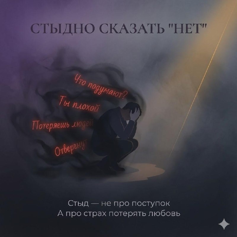 😔 Три дня писал про "НЕТ". Система понятна. Фильтры работают. Но почему мы всё равно не говорим? Вот честный ответ. Потому что стыдно отказать. Что о нас подумают? Как отреагируют? Не потеряем ли отношения? Стыд сильнее любой системы. Вчера случайно вышел на эту тему. В диалоге. И понял: Стыд = не просто эмоция. А механизм выживания души. Который раньше защищал. Вот ключевое: Стыд — это не "я согрешил" или что-то не сделал. Стыд — это "если меня увидят таким, я потеряю любовь". 📌 Стыд всегда связан не с поступком. А с угрозой разрыва отношений. Поэтому мы не говорим "НЕТ": Боимся, что о нас подумают. Боимся потерять отношения. Боимся показаться плохими. Стыд шепчет: "Спрячься — так безопаснее". И это когда-то работало. В детстве, где любовь нужно было заслужить. В команде, где ошибаться было опасно. В семье, где слабость наказывалась дистанцией. Тогда стыд защищал от отвержения. Но теперь? Теперь это тюрьма. Стыд говорит: "Если скажешь 'нет' — тебя отвергнут." "Если постав