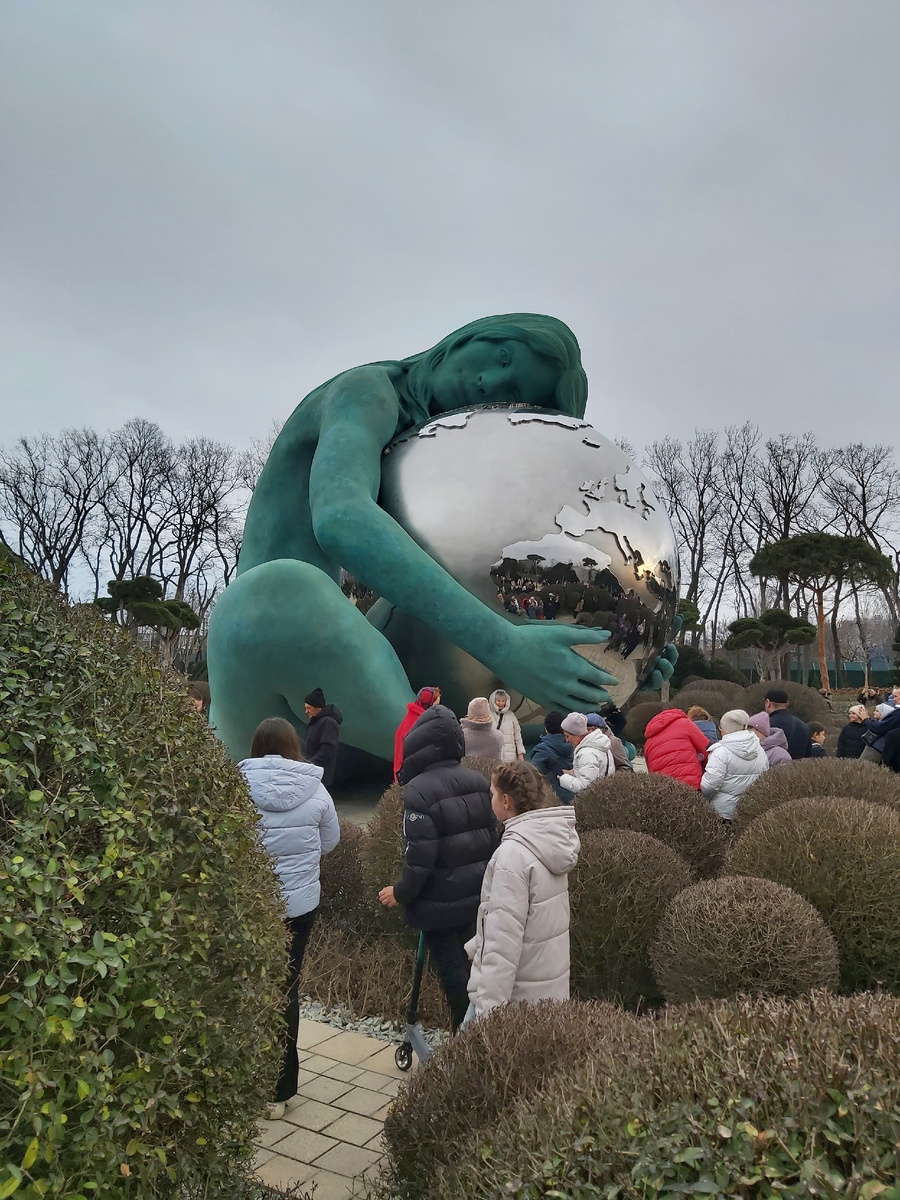 Несколько месяцев назад я забросила свой канал-очень маленькое количество показов и ответы техподдержки в стиле "ограничений не видим, все в порядке" отбили всякое желание писать. Но на этих новогодних каникулах я побывала в Краснодаре, увидела как украсили парк Галицкого, улицу Красную, торговые центры и поняла, почему в этом году этот город занял второе место в России по красоте новогодних украшений после Москвы. Ну и, конечно же, я решила, что эту красоту обязательно нужно показать! Сегодня прогуляемся по парку Галицкого, посмотрим, что нового там появилось, а в следующей статье пройдем по улице Красной и торговым центрам. Итак, парк Галицкого. Я понимала, что лучше всего смотреть его когда стемнеет и загорится иллюминация, но специально приехала пораньше, чтобы увидеть новые достопримечательности в Парке Облаков-Кроличью нору и каскадные водопады. Первое, что видишь, подходя к Парку Облаков, это недавно установленная скульптура "Мать-Земля", изображающая девушку, обнимающую земно
