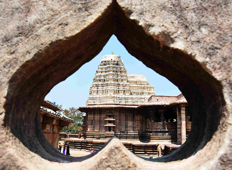 Храм посвящён Шиве. По обе стороны главного святилища расположены дополнительные храмы, а перед входом возвышается массивная статуя быка Нанди, обращённая лицом к божеству. Все эти элементы прекрасно сохранились до наших дней.