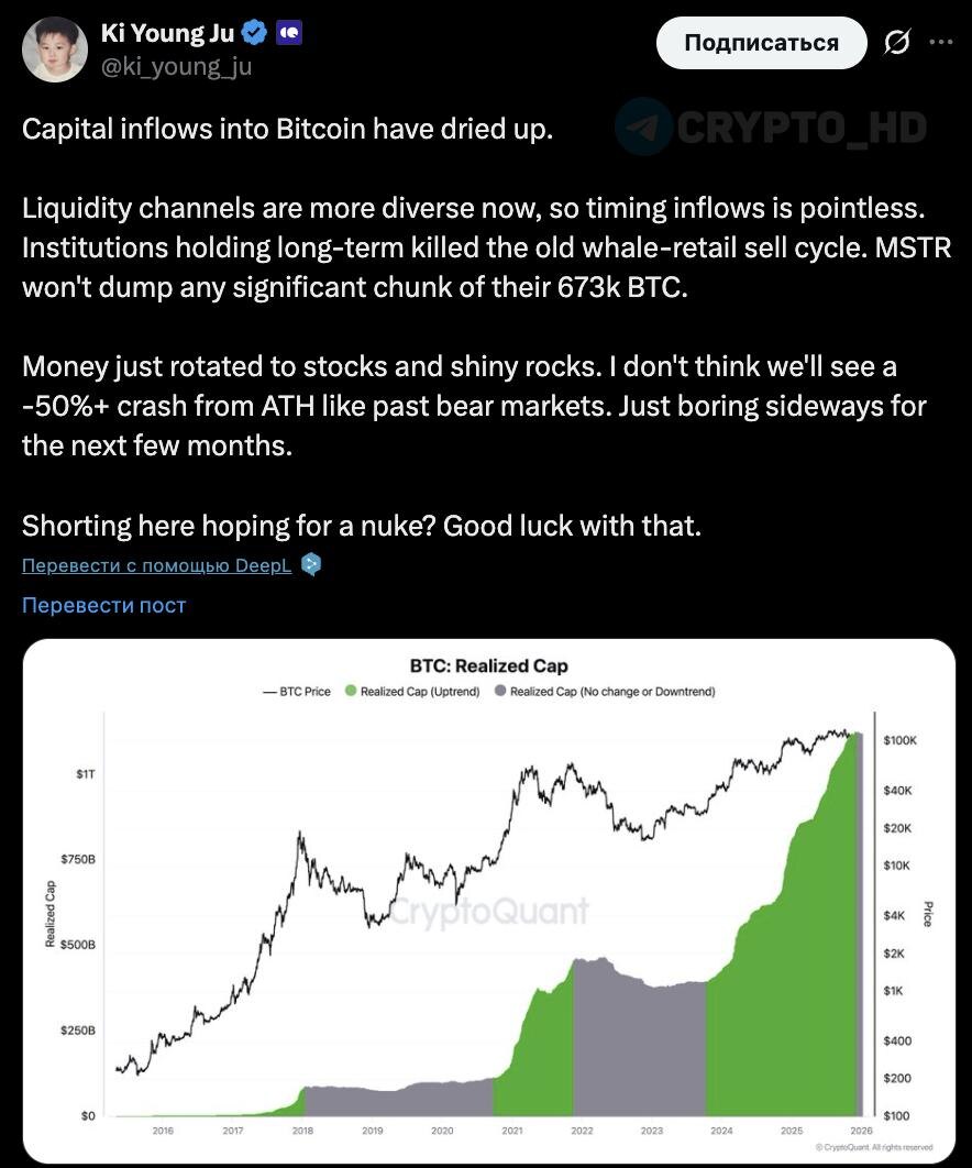 CEO CryptoQuant ΠΏΠΈΡΠ΅Ρ, ΡΡΠΎ ΠΊΠ°Π½Π°Π»Ρ Π»ΠΈΠΊΠ²ΠΈΠ΄Π½ΠΎΡΡΠΈ ΡΠ΅ΠΉΡΠ°Ρ Π³ΠΎΡΠ°Π·Π΄ΠΎ Π±ΠΎΠ»Π΅Π΅ Π΄ΠΈΠ²Π΅ΡΡΠΈΡΠΈΡΠΈΡΠΎΠ²Π°Π½Ρ, ΠΏΠΎΡΡΠΎΠΌΡ Π»ΠΎΠ²ΠΈΡΡ ΡΠ°ΠΉΠΌΠΈΠ½Π³ ΠΏΡΠΈΡΠΎΠΊΠΎΠ² ΡΠΆΠ΅ Π±Π΅ΡΡΠΌΡΡΠ»Π΅Π½Π½ΠΎ. ΠΠ½ΡΡΠΈΡΡΡΠΈΠΎΠ½Π°Π»Ρ Ρ Π΄ΠΎΠ»Π³ΠΎΡΡΠΎΡΠ½ΡΠΌ Π³ΠΎΡΠΈΠ·ΠΎΠ½ΡΠΎΠΌ ΡΠ»ΠΎΠΌΠ°Π»ΠΈ ΡΡΠ°ΡΡΡ ΠΌΠΎΠ΄Π΅Π»Ρ Β«ΠΊΠΈΡΡ ΠΏΡΠΎΠ΄Π°ΡΡ - ΡΠΎΠ»ΠΏΠ° ΠΏΠΎΠΊΡΠΏΠ°Π΅ΡΒ». Strategy Π½Π΅ ΡΡΠ°Π½Π΅Ρ ΡΠ»ΠΈΠ²Π°ΡΡ ΠΊΠ°ΠΊΡΡ-ΡΠΎ Π·Π½Π°ΡΠΈΠΌΡΡ ΡΠ°ΡΡΡ ΠΈΠ· ΡΠ²ΠΎΠΈΡ