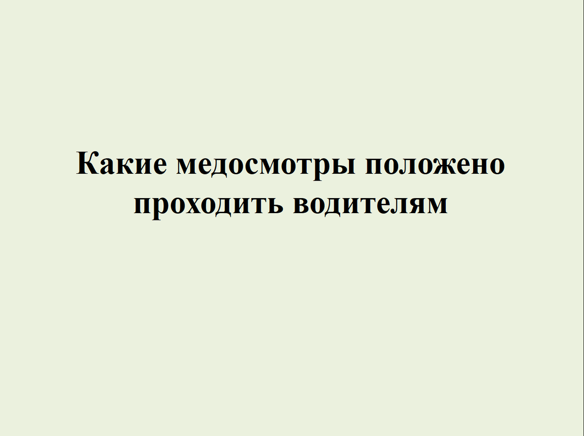 Какие медосмотры положено проходить водителям. При поступлении на работу водители проходят психиатрическое освидетельствование и предварительный медосмотр. Далее водителей нужно направлять на периодические медосмотры не реже чем раз в два года. Медосмотры проходят все категории водителей, в том числе водители грузовиков и тракторов. Водителям полагается прохождение предрейсовых медосмотров. Если водители перевозят пассажиров или опасные грузы, дополнительно нужно организовать послерейсовые медосмотры. Личного водителя директора также нужно направить на послерейсовый медосмотр, так как он перевозит пассажира – директора.