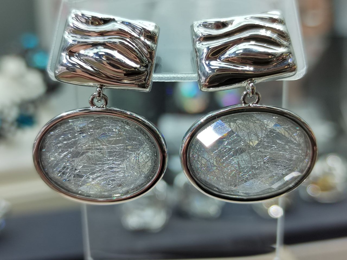 Еще одни серьги льдинки, хотя стекло напоминает очень дорогой камень "волосатик"