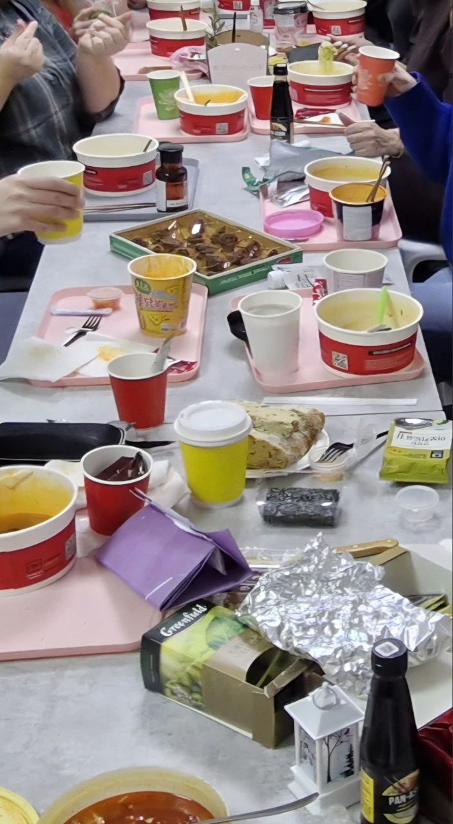 Есть большой стол в отдельном зале, который можно забронить под свое мероприятие. Очень классно, уютно, много места и есть проектор. По лапше и топпингам очень подробно консультируют: все расскажут-покажут, варить рамён научат. Работают очень приветливые люди. Очень большое разнообразие еды! Мой выбор на фото. Очень всё советую, но лучше добавлять поменьше острого соуса, если берете острую лапшу. Особенно понравились токпоки с терияки и чесноком, чипсы нори, напиток пребиотик с гранолой, кимчи, медовые корейские печеньки. Набрали с собой гостинцев, на подарок идеально.