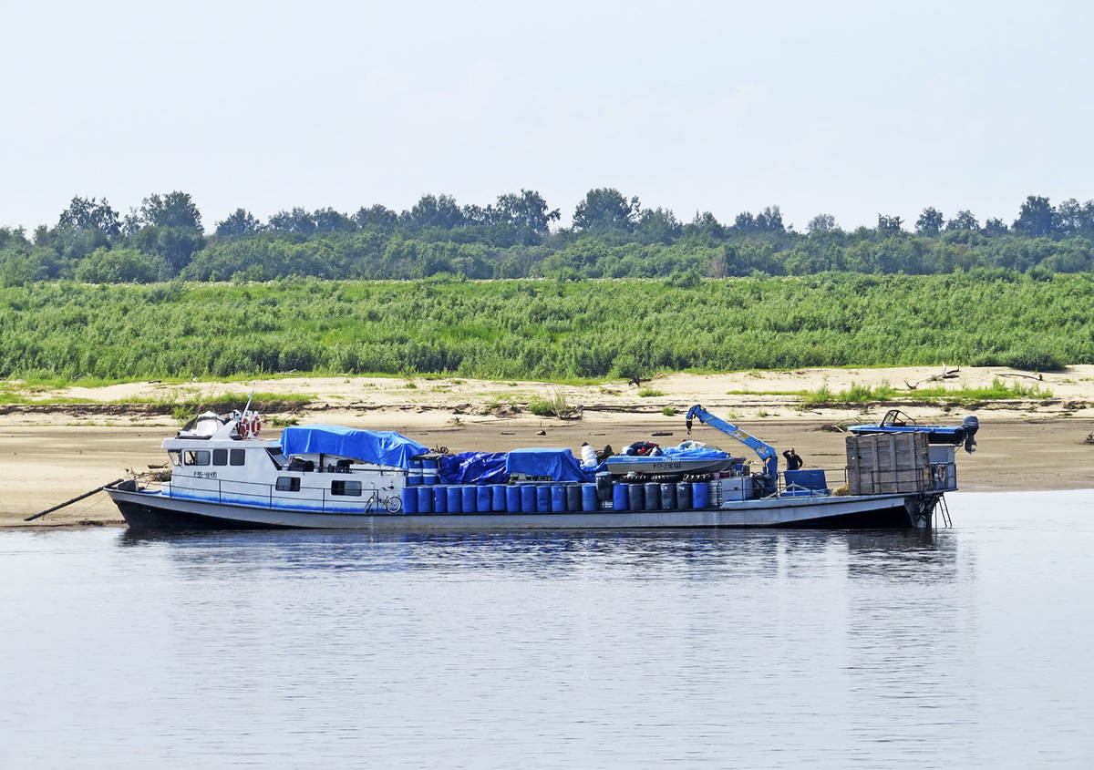 На левом берегу Енисея между Ярцево и Ворогово жарким днём у широкого пляжа мы увидели самодельного вида посудину, просевшую от груза топливных бочек. Рядом кто-то купался у отмели, с берега глядели мужчины с окладистыми бородами и женщины в длинных платьях. Здесь в Енисей вливается Дубчес...