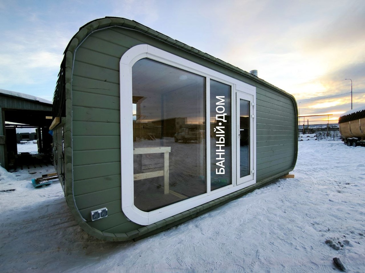 Готовая баня-бочка «АКВАПолис» под ключ — баня с продуманной планировкой на 3 отделения