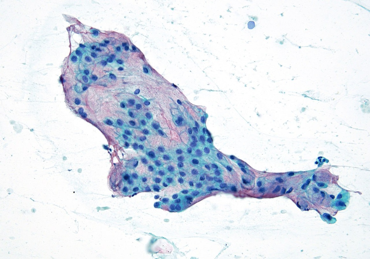 Цитологические препараты зачастую имеют обманчиво доброкачественную цитоморфологическую картину. Для уточнения диагноза более информативен метод клеточного блока. Гистологическое исследование подтвердило инвазивный рак. Данная опухоль встречается крайне редко — менее чем в 1% случаев. #цитология #легкое