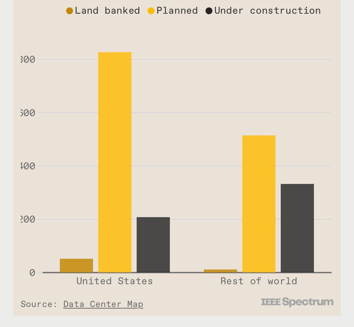 Физическая инфраструктура интернета и ИИ всё сильнее концентрируется в США — и это уже не ощущение, а сухая статистика. По данным анализа земельных сделок и проектов, которые либо уже строятся, либо пока не анонсированы публично, более половины всех новых дата-центров в мире находятся в США. И это, скорее всего, заниженная оценка. Причина простая: американские дата-центры в среднем крупнее, чем в других странах, а значит, реальный перекос по вычислительным мощностям ещё сильнее. Всего сейчас в мире строятся 1947 дата-центров, и 55% американских проектов сосредоточены всего в пяти штатах: Вирджиния, Техас, Иллинойс, Джорджия и Аризона. Это уже не просто география — это новые узлы глобального интернета. Крупнейшие игроки тоже не скрываются: • Amazon AWS — 108 новых дата-центров • Microsoft — 84 • Google — 36 Фактически, именно США сегодня строят фундамент для следующего технологического цикла — ИИ, облаков, больших данных и всего, что требует гигантских вычислений. При этом Китай, в