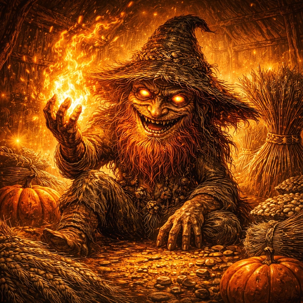 А есть те, от которых зависит выживание. Овинник никогда не был сказочным персонажем «для рассказов у печи». Его имя произносили тихо, без шуток и без лишних слов. Потому что овин — это не просто хозяйственная постройка. Это узел риска, место, где встречаются огонь, зерно и человеческая ошибка. И в этом месте всегда присутствует он — Овинник. Существо, которое одновременно хранит урожай и может уничтожить его за одно неверное движение. Кто такой Овинник на самом деле В традиционном представлении овинник — дух овина, амбара, сушильни зерна. Но назвать его просто «духом постройки» — значит ничего не понять. Овинник — это воплощённый контроль над огнём. Он не живёт в пламени, но следит за ним. Он не разжигает огонь, но решает, когда он станет опасным. В отличие от домового, который следит за бытом, овинник отвечает за результат труда. Урожай — это итог года. И овин — место, где этот итог либо сохраняется, либо исчезает.