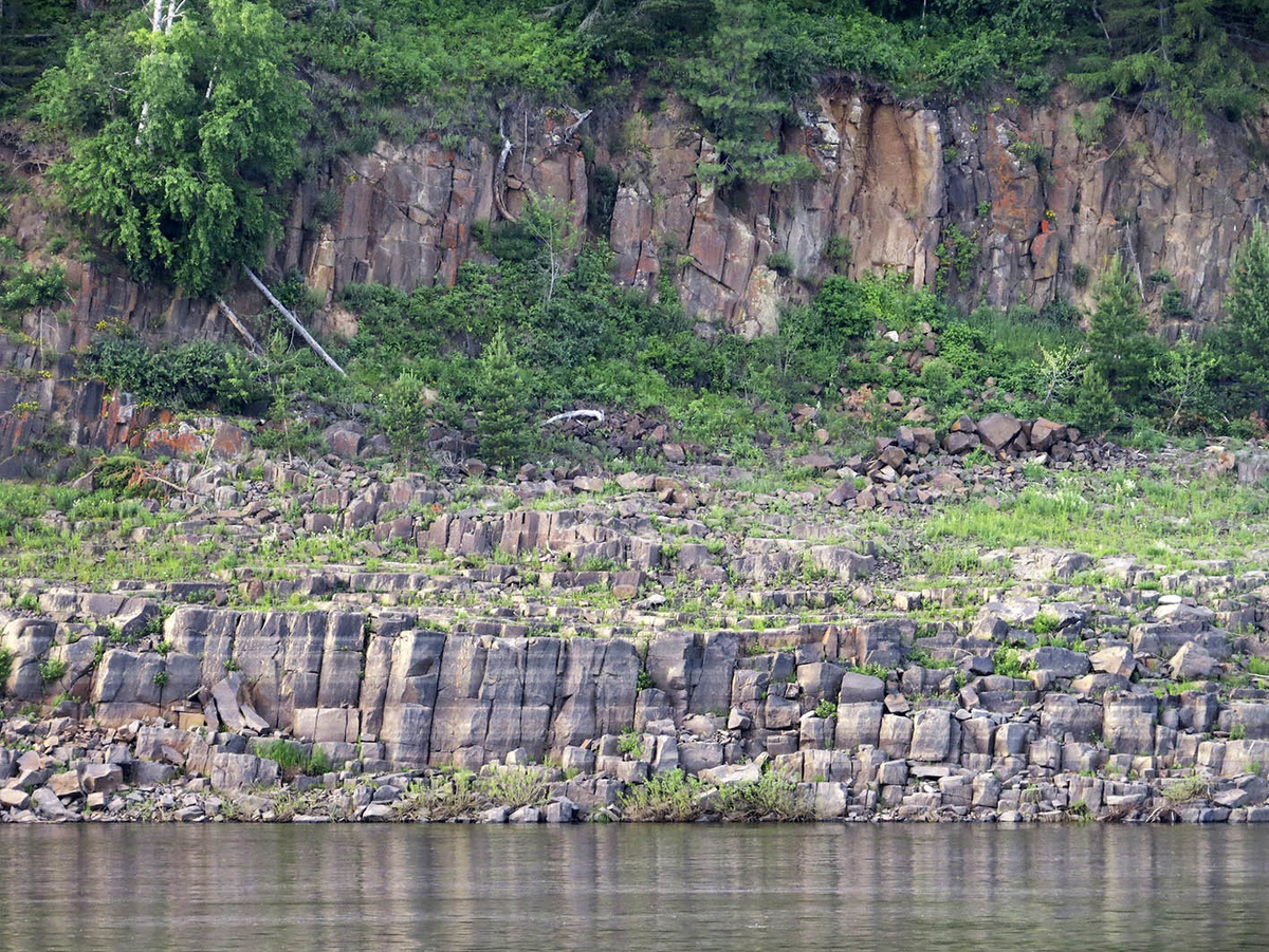 Вороговское многоостровье, Осиновские пороги и острова Кораблик и Барочка - самые живописные места Енисея остаются позади. Но камни тянутся и дальше: Что немудрено - ведь впереди с правого берега впадает Подкаменная Тунгуска: Длиной (1865км) и полноводностью (1587 м³/с) слегка превосходящей Оку, она течёт из глубин Эвенкии, нанизывая на себя десяток селений, включая бывшие райцентры Ванавара и Байкит. Исторически она была рубежом экспансии купцов-"тунгусников" с Ангары, да и природных красот там полно - всего в 70 километрах выше Суломайские столбы, словно привезённые с Лены. Но устье - низменно и прозаично. За ним стоит одноимённая деревенька в 40 жителей: А её часовне, приписанной в Дубчесской церкви (см. Ворогово), повезло попасть кому-то в кадр: Почти напротив, со скоростным "Иваном Годенко" (возит в Енисейск) у причала - Бор: Катер уступил нам место, и я наконец заснял, как причаливает теплоход: Сходить на берег смысла не было - Бор выходит к реке окраинами за лесом, да и в центре
