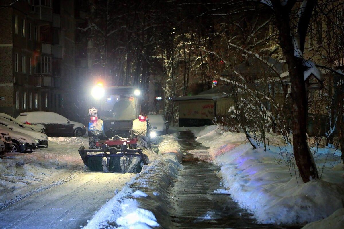 В 6 утра более тридцати единиц снегоуборочной техники выехали с базы МБУ «Благоустройство СП», чтобы расчистить Сергиево-Посадский округ от снега.