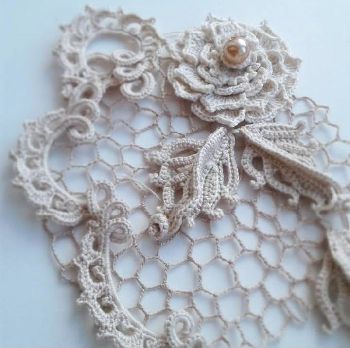 Сегодня хочу рассказать о вязании нерегулярной (мозаичной) сетки в современном ирландском кружеве. Сеточка используется для соединения мотивов между собой, а ещё она является вполне самостоятельной частью композиции.