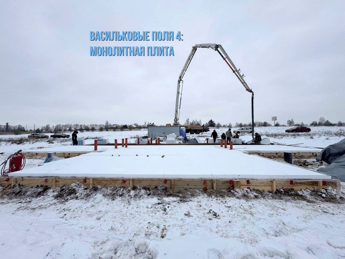 В КП «Васильковые поля 4» завершили устройство монолитной плиты толщиной 300 мм — рассказываем, как именно это сделали