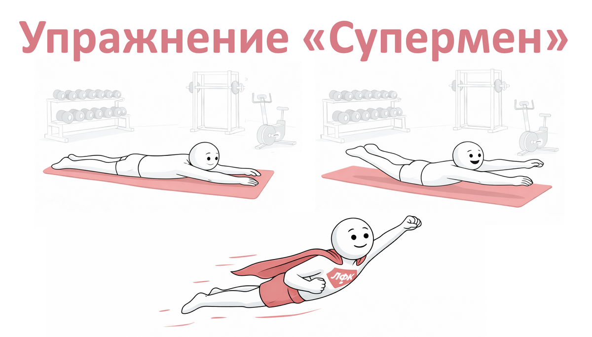 Упражнение «Супермен» — это изолированное движение, при котором вы, лёжа на животе, одновременно отрываете от пола вытянутые руки и ноги. Оно имитирует позу летящего героя и направлено на глубокую проработку мышц-разгибателей спины и ягодиц. Это ключевое упражнение для построения мощного мышечного корсета, защищающего позвоночник. Регулярное выполнение «Супермена» даёт комплексный эффект, подтверждённый практикой реабилитологов и тренеров: 1. Укрепление разгибателей спины. Упражнение целенаправленно нагружает длинные мышцы спины, которые отвечают за удержание позвоночника в прямом положении. Это основа для здоровой осанки и профилактики «офисной» сутулости. 2. Активация ягодичных мышц. В верхней точке движения необходимо сознательно сжимать ягодицы. Это не только усиливает нагрузку на них, но и учит мозг вовлекать их в работу, что критически важно для стабилизации таза и снятия компенсаторной нагрузки с поясницы. 3. Улучшение межмышечной координации. Сложная задача — поднять одновреме