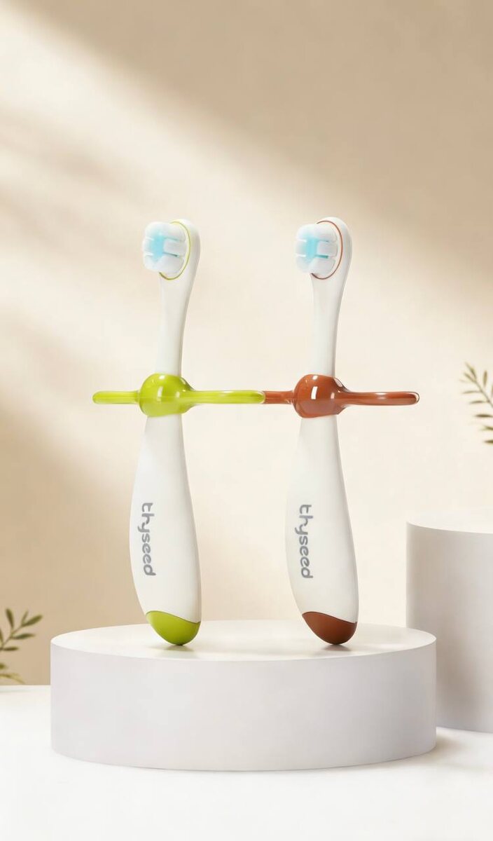 В качестве примера инструмента, соответствующего перечисленным критериям, можно отметить детскую зубную щётку Thyseed. Её особенности основаны на адаптации к потребностям раннего возраста: