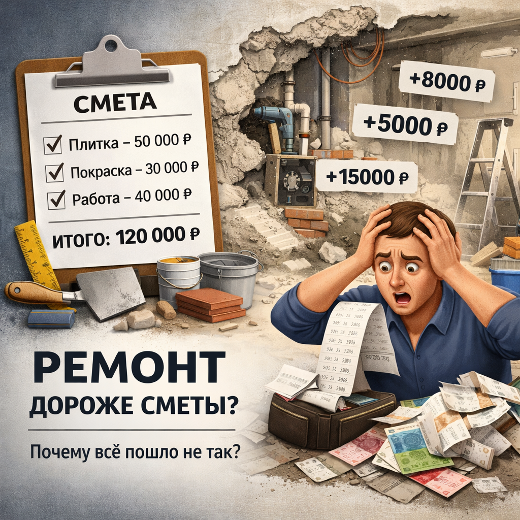 Почти каждый ремонт начинается одинаково. Есть смета. Есть цифры. Есть ощущение контроля расходов. Через пару месяцев контроль куда-то исчезает, а сумма в голове и уже другая. И дело не в том, что «все вокруг плохие». Смета — это попытка угадать будущее. Её считают по текущему пониманию объекта, без учёта решений, которые ещё не приняты, и в основном - без детализации. Проблема в том, что большинство воспринимает смету как финальную стоимость. А это не так. Подготовка оснований, доработки, усиления, всплывающие детали при демонтаже, переделки. Каждая из этих вещей по отдельности кажется несущественной. В сумме они и делают тот самый «плюс 20–30%», который никто не закладывал. Например, в смете есть «укладка плитки». Но нет: — подрезок — усиления основания — выравнивания — дополнительных углов и ниш Формально работа та же. По факту — объём другой. Пока ремонт идёт, меняется всё: — материалы — планировка — решения — требования к качеству Каждое изменение — это новые деньги. Но в мом