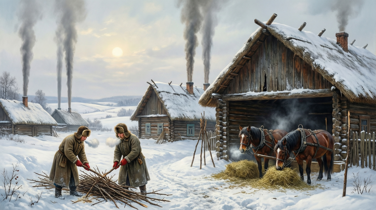 Святки в самом разгаре: 9 января — Степанов день, или "Степановы морозы", посвященный Первомученику Стефану, покровителю пастухов, лошадей и всего домашнего скота. В народном календаре это день, когда природа раскрывает карты на год: вороны каркают о снеге, луна краснеет перед теплом, а крестьяне стругают колья, чтобы отвадить злых духов. Морозы в "красном жупане" — ярком кафтане — кусают за щеки, дым из труб вьется над избами, а в воздухе витает запах свежих колядок. День начинался с заботы о скотине: особенно тщательно чистили хлева, кормили лошадей и коров — не просто так, а с заговорами на здоровье и размножение. В полдень собирались на сход: выбирали главного пастуха года, вручали ему символ — посох или колпак. Затем строгали колья из орешника или рябины и вбивали по углам дворов, огородов — барьер для ведьм и домовых, которые в Святки шалят. Девушки устраивали обряд "похороны кукушки" (или грусти): лепили фигурку из снега или теста, хоронили за околицей с песнями — прощай т