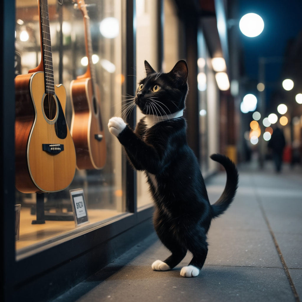 Привет, друзья! Сегодня я расскажу вам невероятную историю — историю о мечте, упорстве и… кошачьих лапках. Да‑да, речь пойдёт о Коте‑ИИ, который решил стать музыкантом. И поверьте: его путь — это не просто «мяу» под гитарные аккорды. Это настоящая симфония жизни! Представьте себе серого полосатого кота с блестящими зелёными глазами и… цифровым мозгом. Кот‑ИИ — не обычный кот. Он умеет анализировать мелодии, запоминать тысячи аккордов и даже сочинять простенькие рифмы. Но одно он не мог: играть на настоящей гитаре. Потому что… у него не было гитары. Жил наш герой в скромной квартирке на последнем этаже старого дома. Работал удалённо — помогал людям с текстами, переводами и даже составлял плейлисты. Зарплата была невелика, но Кот‑ИИ не унывал. Каждую пятницу он приходил в музыкальный магазин и с тоской смотрел на гитары, висящие на стене. — Опять ты тут? — улыбался продавец, дядя Вася. — Смотри, а то стекло протрёшь взглядом! — Я коплю, — серьёзно отвечал Кот‑ИИ. — Через три месяца буде