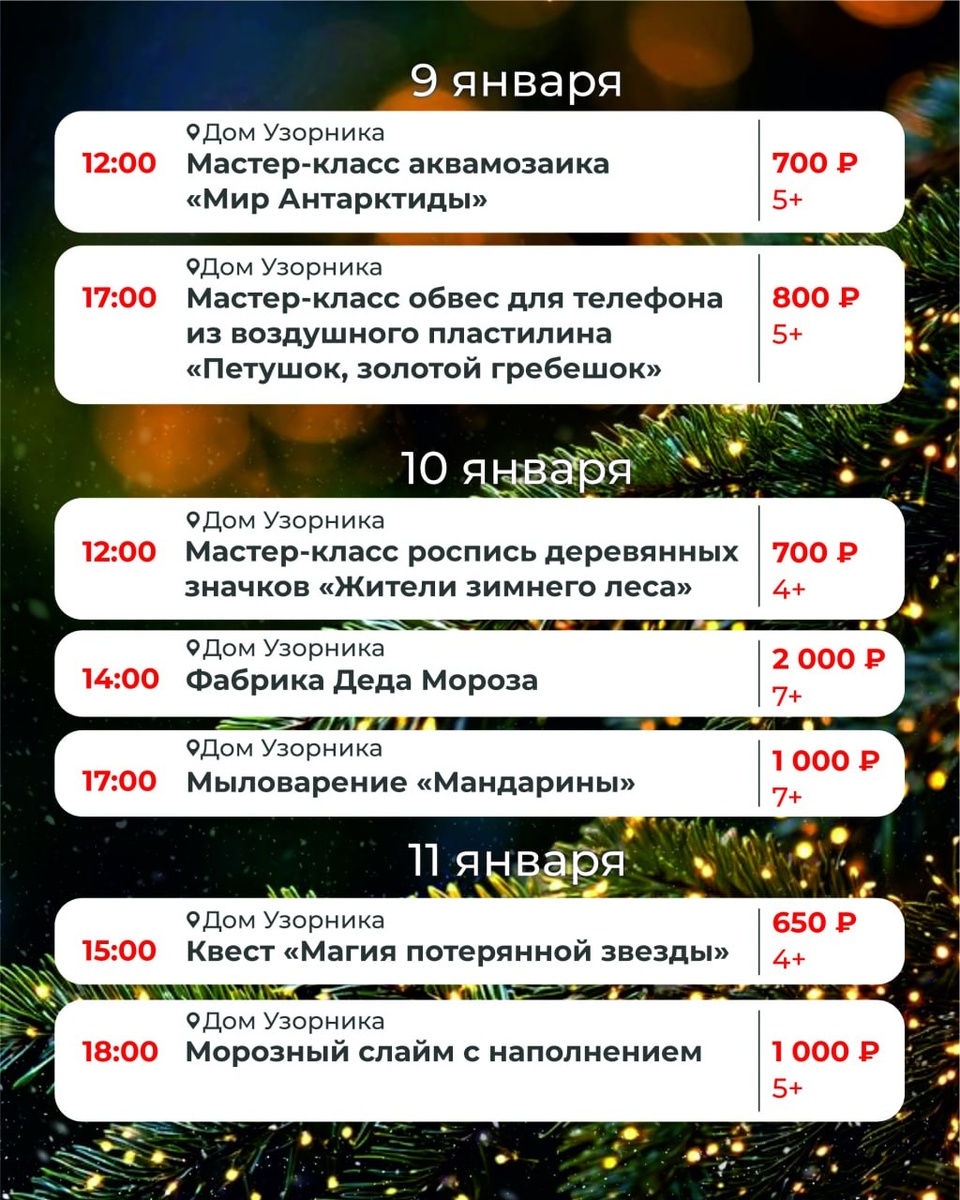 💬 «Мы подготовили увлекательную программу. Посетители своими руками изготовят памятные сувениры, сходят в гости к Деду Морозу, а также научатся делать актёрский грим», — отметили организаторы.