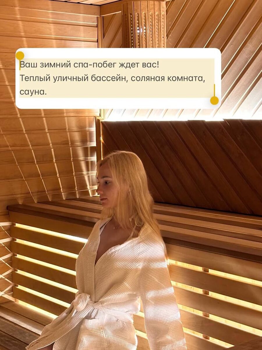 ) и в вашем полном распоряжении: 🔹 Расслабляющая сауна-чтобы прогнать усталость и стресс. 🔹 Целебная соляная комната-для лёгкого дыхания и укрепления иммунитета. 🔹 Подогреваемый бассейн-нежное удовольствие в любое время года. Не знаете , чем занять детей? Пока вы наслаждаетесь тишиной, ваши непоседы будут в восторге от нашей большой игровой!🎠 Хочется полного релакса? Дополните отдых сеансом профессионального массажа(оплачивается отдельно). Подарите себе и своей семье идеальный день без хлопот! ❤️ 📞 Звоните, чтобы забронировать свое время! 8(918)469-58-88