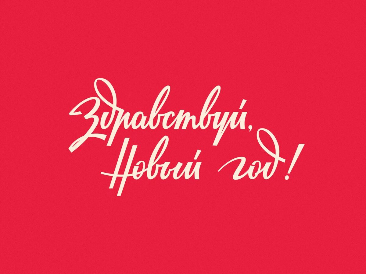 Четвертая новогодная леттеринг надпись. Открытка посвященна наступающему Году единства народов по указу презинета РФ. Шарики в цвета триколора.