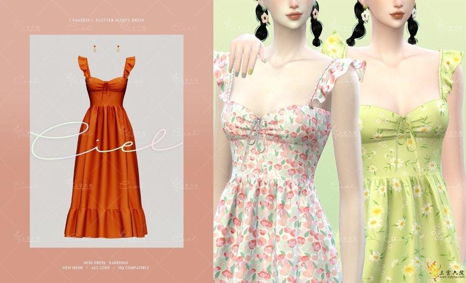 Загрузить модификацию Платье и серьги - Valerie Dress & Earrings для Sims 4 - #Вполныйрост@simsfans_ru