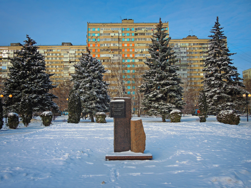 В рамках фотопрогулок по Самаре сезона НГ2026 приглашаю снова вернуться на бульвар улицы Стара-Загора, который тянется от бывшего кинотеатра «Шипка» до улицы Ново-Вокзальной. Недавно я показал, как его украсили арками, которые раньше устанавливали на пешеходной части улицы Ленинградской. Через несколько дней сюда привезли ещё один объект. Один из кубиков, которые в прошлом году можно было видеть также на Ленинградской, в этот раз тоже переехал на Стара-Загору. Установили его на площади Росовского. Это небольшой сквер, ограничивающий бульвар со стороны бывшего кинотеатра «Шипка». На мой взгляд, «площадь» - это слишком громкое слово для него. Но само по себе место вполне симпатичное. Название в честь Алексея Росовского было присвоено ему в 2010 году. Тогда же около клумбы, занимающей центр сквера, был установлен памятный знак. Алексей Росовский в 1960-80-х годах занимал должность, аналогичную современному мэру города. При нём в городе было построено много значимых объектов и в целом жилы