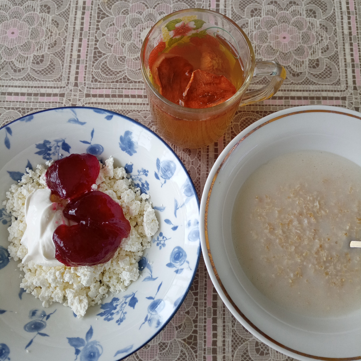 Встала, приготовила завтрак. Молока не было, каша на воде, но вполне съедобная оказалась. Надо будет купить ещё такую, хоть она и дороже той, что я всегда покупала в Чижике. Творог ела со сметаной и желе из красной смородины. Желе получилось настоящее, как и надо. Вчера вечером сварила компот, пила его, только слегка подогрела. Яблочки свои ещё есть.