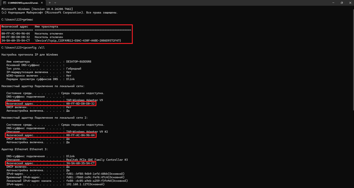 У любого устройства, способного подключиться к сети, есть сетевой адаптер. Или несколько. А у каждого из них есть специальный идентификатор, который называется MAC-адрес. Это одна из основных характеристик сетевого адаптера, необходимая для настройки и администрирования своих гаджетов. И сейчас мы расскажем, как узнать MAC-адрес вашего устройства. MAC-адрес (Media Access Control) – уникальный физический идентификатор сетевого адаптера любого устройства с возможностью выхода в сеть. В отличие от IP-адреса, который присваивается провайдером или роутером для устройства в каждой новой сети, MAC-адрес «прошит» в самом устройстве и остается неизменным при смене сети. Он используется для идентификации устройства в пределах локальной сети. Существует несколько простых встроенных способов. Это самый универсальный и информативный метод. Этот способ особенно полезен, так как показывает адреса всех адаптеров, включая неактивные, что важно для устройств у которых есть как проводное,