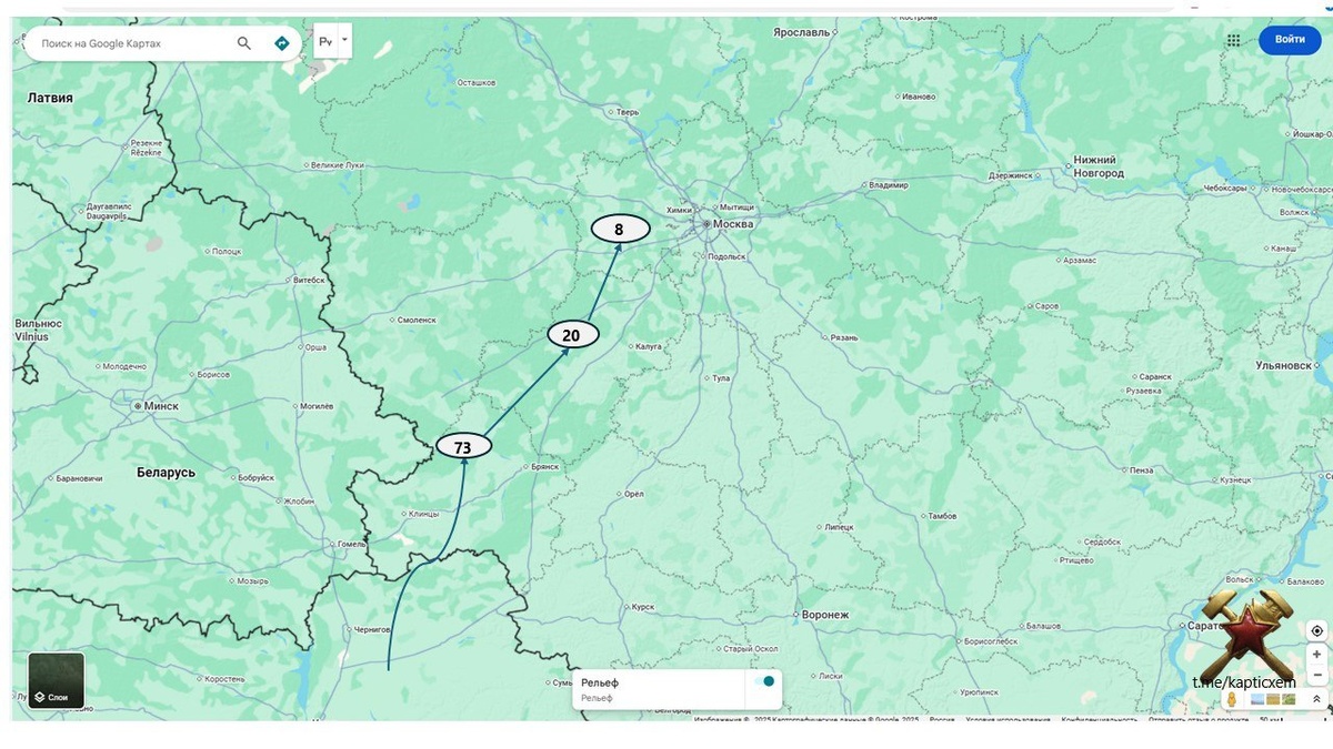 Цель атаки: Московская область. До нее долетели единицы, где и были уничтожены С 15.00 до 18.00 мск дежурными средствами ПВО уничтожены 111 украинских беспилотных летательных аппаратов самолетного типа: ▫️ 73 – над территорией Брянской области, ▫️ 20 – над территорией Калужской области, ▫️ 8 – над Московским регионом, ....