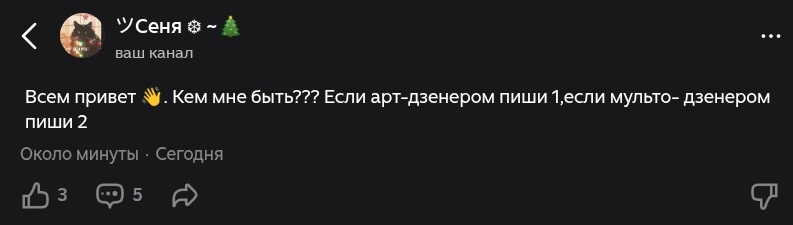 2/2 поэтому... Я буду 60% мульто-дзенером, 20% арт-дзенером, 20% игро-дзенером. Потому что рисовать я не очень люблю, играть и снимать тоже... И остаётся 1 вариант. Всем пок