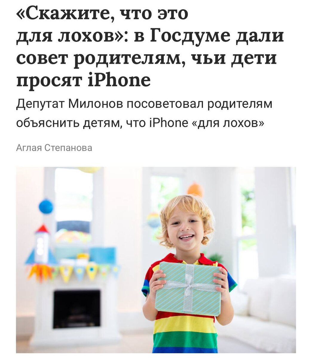 » Депутат Госдумы Виталий Милонов посоветовал родителям объяснять детям, что iPhone — «не цель в жизни». По его словам, смартфоны Apple — это «для лохов, лохушек и понторезов», а функционально они проигрывают другим гаджетам. Можно иметь айфон разве что «по приколу», считает политик. Главное, чтобы дети не видели, как родители сами «страдают по новому iPhone 17 Pro Max», накачивают губы и рвутся в Дубай. К слову, у самого Милонова, по данным СМИ, iPhone 17 Pro. Nokia, видимо, сломалась. #Милонов #iPhone #НовыйГод Коллектор событий нашёл эту новость в каналах: Москва с огоньком Live • Однажды в трендах • Петя Первый • Рестарт • ЕЖ ℹ️ Информация собрана нейросетью из публичных источников и не является официальной. 📰 Читайте Коллектор Событий: В Телеграм: https://dzen.ru/id/69282fd0368998038a2b989d В Дзен: https://dzen.ru/event_collector В ВКонтакте: https://vk.com/collector_event