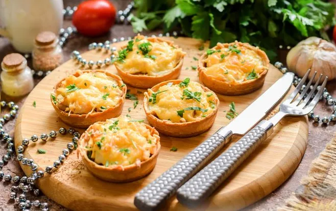Если вы решили удивить своих гостей разнообразными закусками, можно сделать шикарные тарталетки с курицей и грибами. Благодаря молочно-сметанному соусу закуска будет сочной и нежной. Она отлично подойдёт для праздничного стола. Жюльен в тарталетках – удобное и аппетитное исполнение. Понадобится: