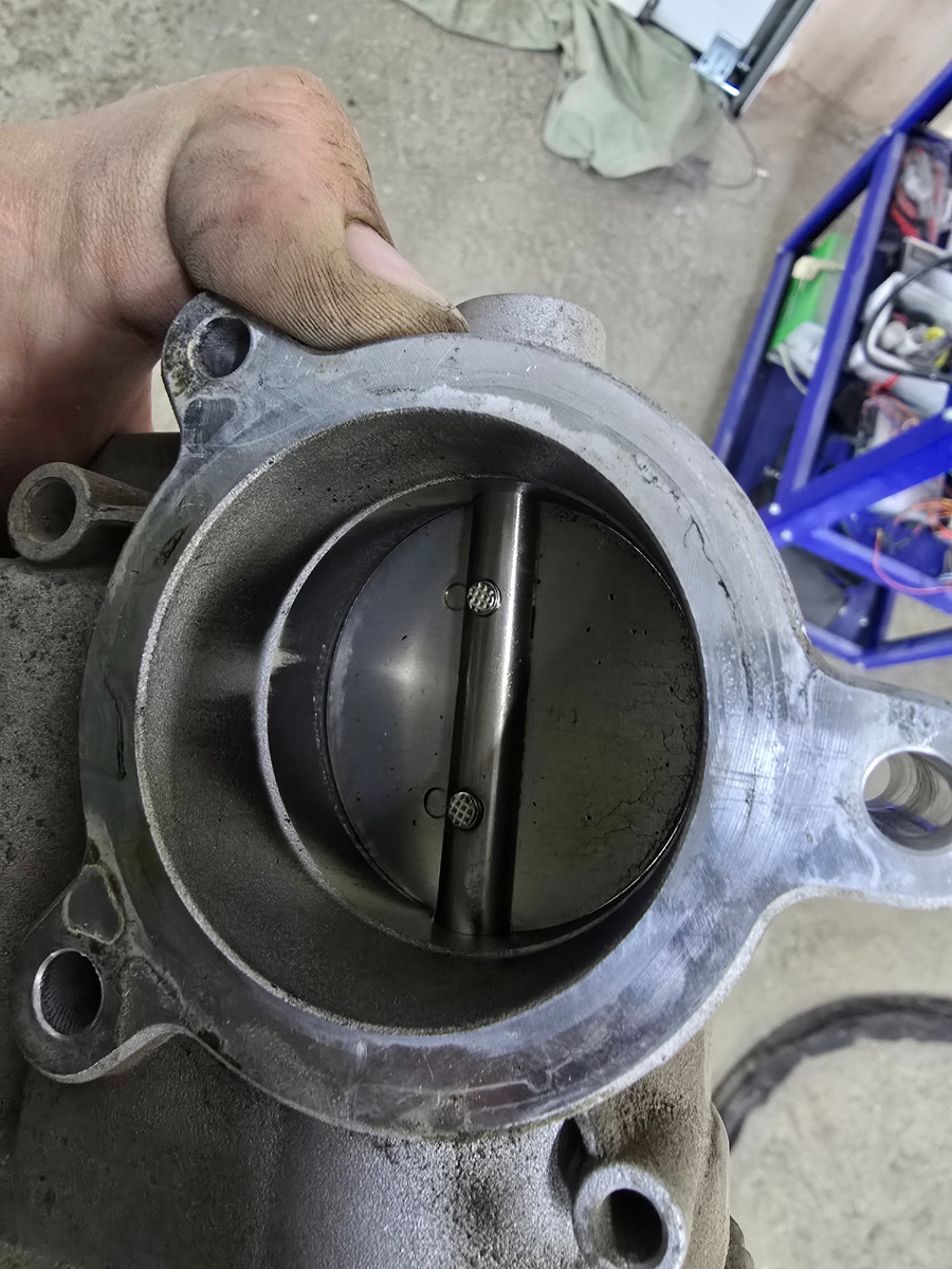 Мы видим как после чистки дросель полностью не закрывается, нагар смыли, теперь заслонка сможет