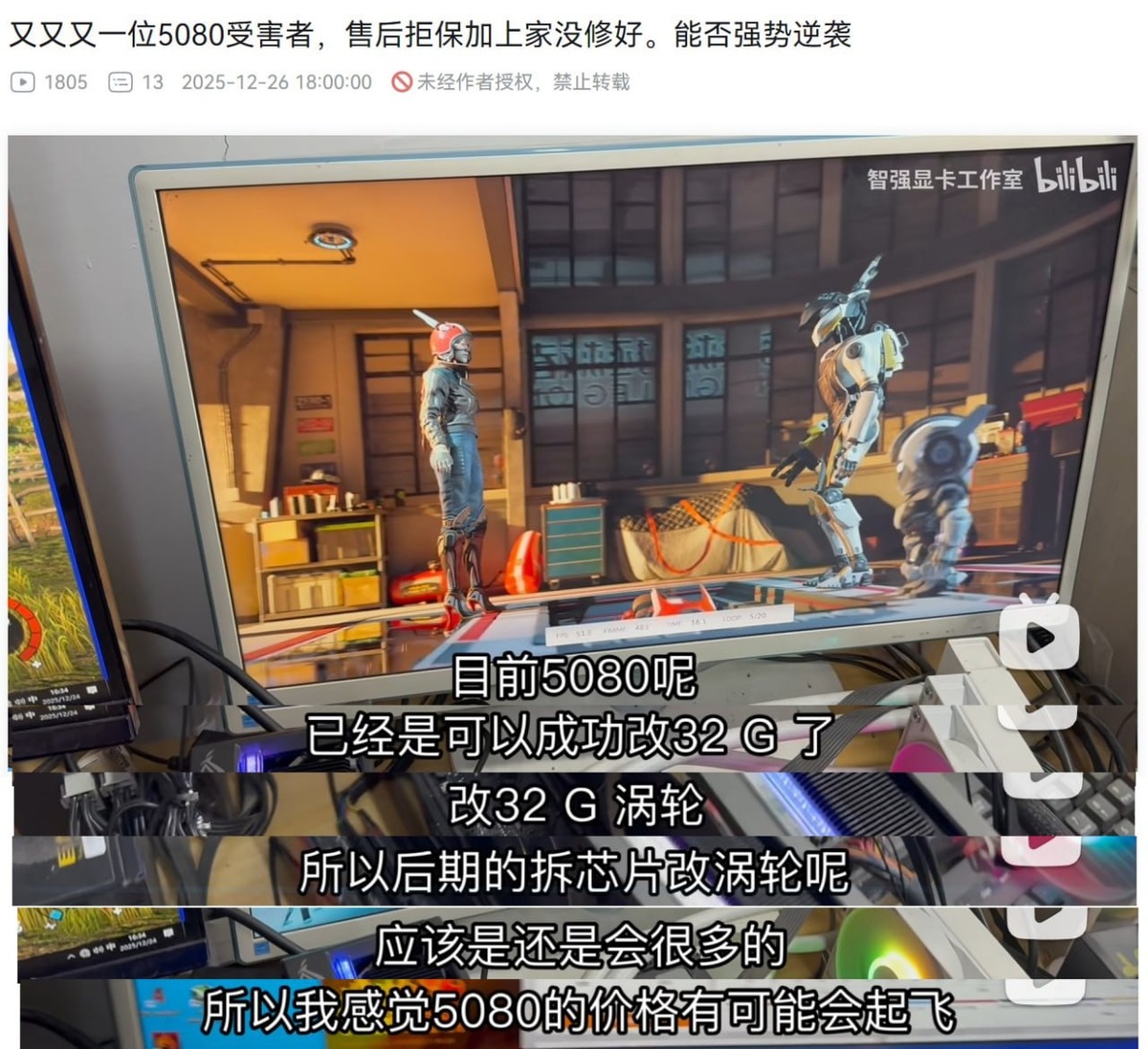 Ремонтник из Китая сообщил, что GeForce RTX 5080 успешно переделывают в версию с 32 ГБ памяти, И якобы такой «апгрейд» уже запущен в