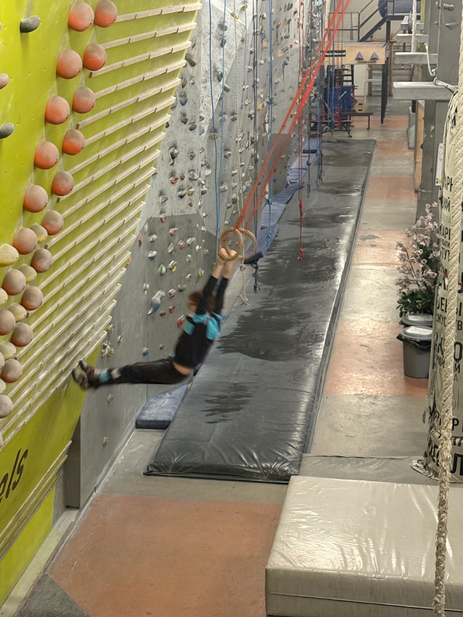 Наиболее ненавистным у юного скалолаза является блок ОФП. Но именно после него идут любимые прыжки в поролоновую яму. Поэтому через слёзы, сопли, рыдания и проклятия в адрес деда Андрюши товарищ сделал все упражнения и зареванный, но счастливый полез на высоченную стену, чтобы с нее прыгать в яму (под присмотром тренера, разумеется).