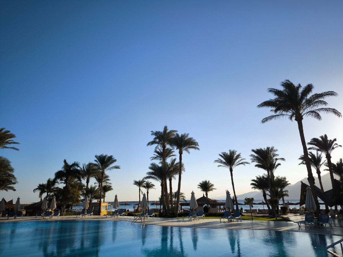На фото выше бассейн отеля где отдыхаю сейчас. За ним пляж и Красное море.