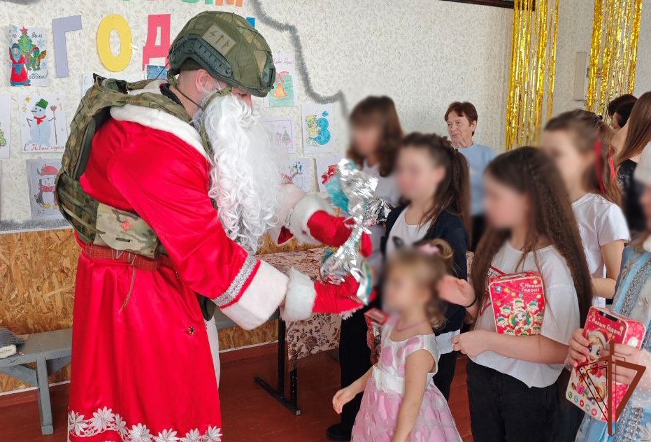 Росгвардейцы в костюмах Деда Мороза и экипировке бойца сил специального назначения пришли к учащимся с поздравлениями, провели для ребят конкурсы и викторины, вручили сладкие подарки.